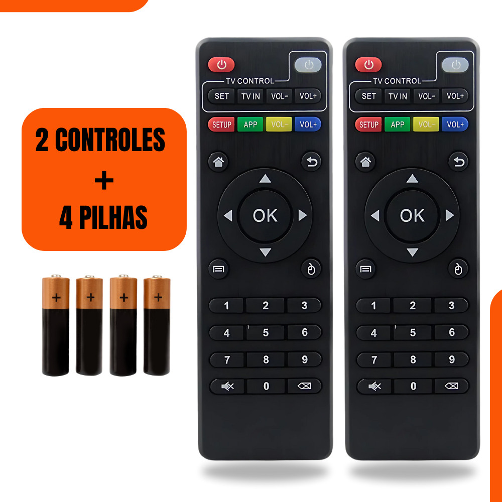 Produto no BRASIL, com Envio imediato. Comprou até as 11:00 horas de (segunda a sexta) enviamos no mesmo dia a transportadora. Produto de alta qualidade, NOTA 5 ESTRELAS. KIT COMPOSTO POR: 2 CONTROLES + 4 PILHAS AAA. NÃO SERVE EM TV COMUM / CONTROLE PARA TV BOX UNIVERSAL. Produto de alta qualidade. Designer sofisticado. Ergonomico. Confiabilidade UNIVERSAL. Infra vermelho. Até 10 metros de distancia. COMPATIVEL COM TODAS BOX TV.