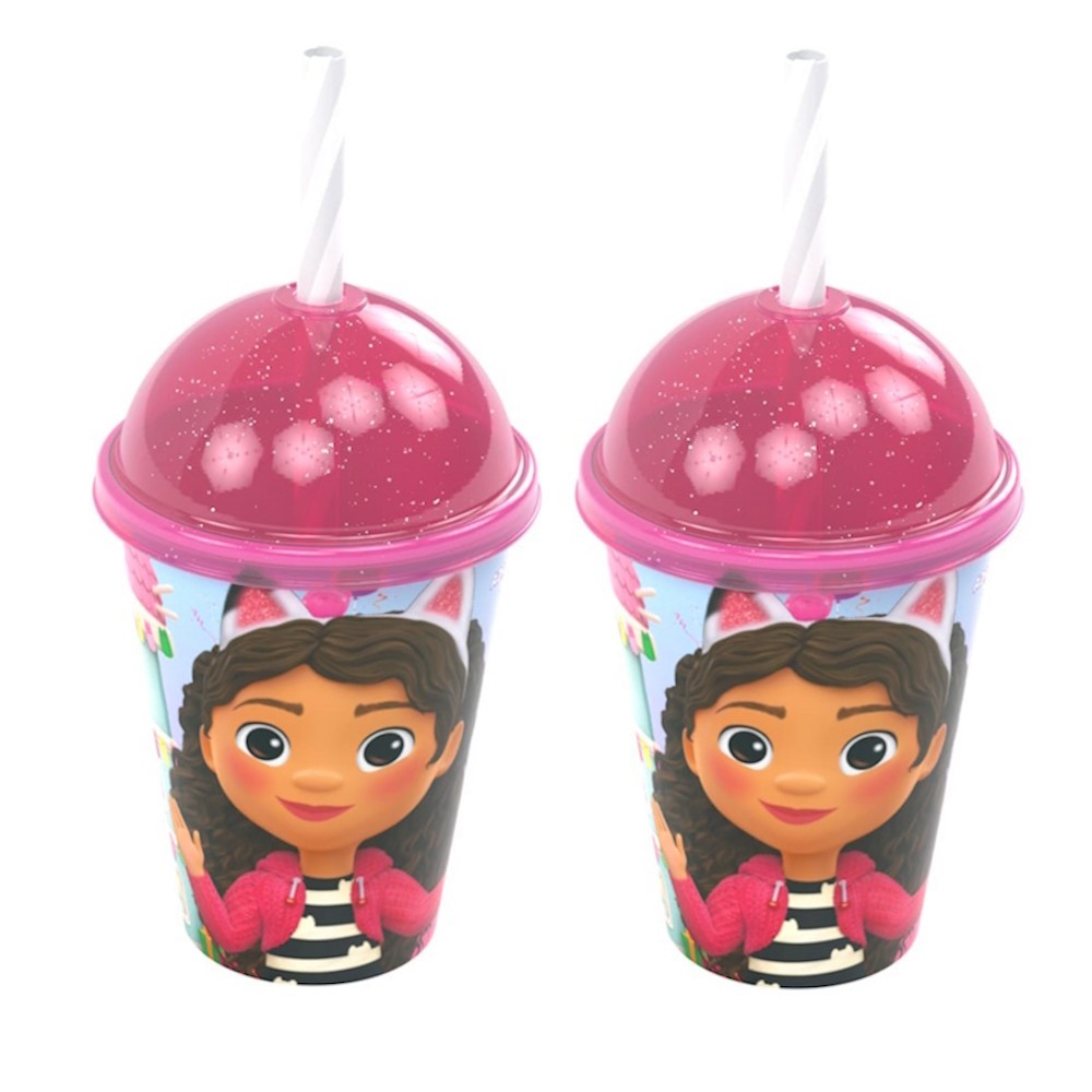 Kit 2 Copo Infantil Shake c/Canudo A casa Mágica da Gabby 280ml