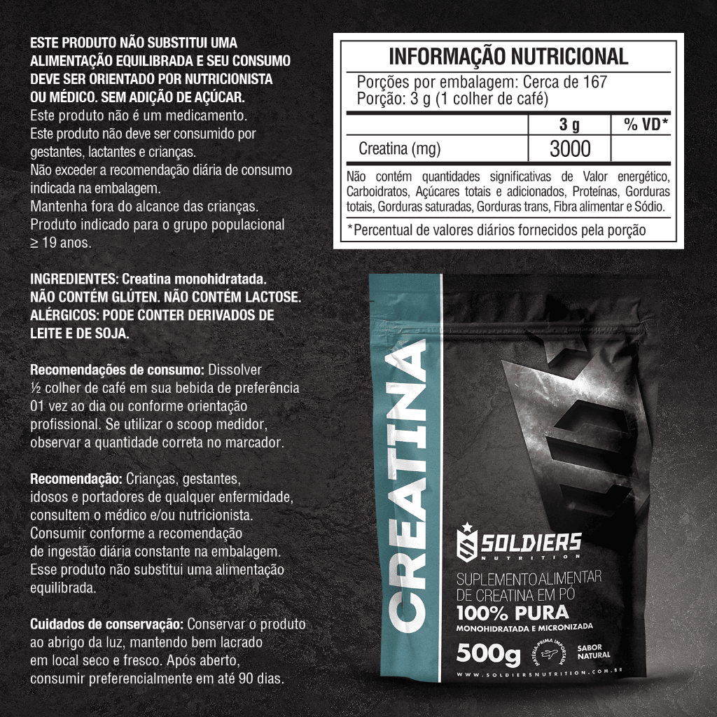 Kit: 2 Creatinas Monohidratadas 500g - Soldiers Nutrition