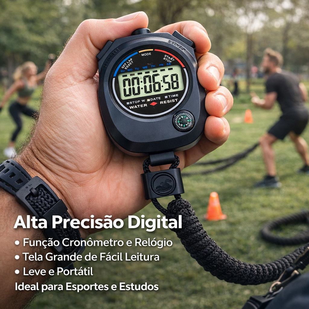 ⏱️ Cronômetro Digital Esportivo Preto com Relógio Alarme Calendário e Bússola Integrada Por que esse modelo é perfeito para você: 🏃 Precisão de 1/100 segundo – meça tempos com exatidão profissional em treinos corridas natação futebol e academia sem margem para erros 🕒 Funções completas em um único aparelho – relógio calendário alarme e cronômetro integrados eliminam a necessidade de vários dispositivos 🧭 Bússola funcional embutida – ideal para treinos ao ar livre trilhas e atividades externas oferecendo mais versatilidade e segurança Aspectos técnicos principais: 🖥️ Display LCD com 6 dígitos de fácil visualização inclusive em ambientes externos ⏱️ Precisão de 1/100 segundos para medições exatas 🔘 Funções Start Stop e Reset de operação simples 🕛 Formato de hora 12h ou 24h selecionável 📅 Calendário completo com dia mês dia da semana ⏰ Função alarme e despertador configurável 🧭 Bússola analógica integrada para orientação 🧱 Corpo em plástico ABS resistente e durável 🧵 Cordão incluso para transporte seguro Dimensões: 📏 Altura aproximada 10 cm 📏 Largura aproximada 7 cm 📏 Espessura aproximada 2 cm ⚖️ Peso leve e portátil 🔋 Voltagem / Alimentação Alimentado por bateria interna de longa duração 🧱 Materiais Plástico ABS de alta resistência Cordão em nylon reforçado 📊 Capacidade / Potência Não se aplica 📶 Conectividade / Compatibilidade Não se aplica ➕ Funções adicionais Relógio em tempo real Calendário integrado Alarme configurável Bússola analógica funcional Vantagens para o dia a dia: ✨ Permite controle preciso do tempo em qualquer atividade física ✨ Substitui o uso do celular evitando distrações durante treinos ✨ Compacto leve e fácil de transportar no pescoço ou pulso ✨ Ideal para atividades esportivas escolares profissionais e ao ar livre ✨ Mais organização pontualidade e desempenho nas rotinas de treino Ideal para quem: 🏋️ Atletas e praticantes de academia 🏃 Corredores e esportistas em geral ⚽ Treinadores e professores de educação física 🏕️ Praticantes de trilhas camping e atividades outdoor 🎓 Estudantes em provas físicas e avaliações escolares O que vem na caixa: 📦 1 Cronômetro Digital Esportivo Preto 📿 1 Cordão resistente para pescoço 🚚 Produto em estoque envio imediato após a confirmação do pagamento