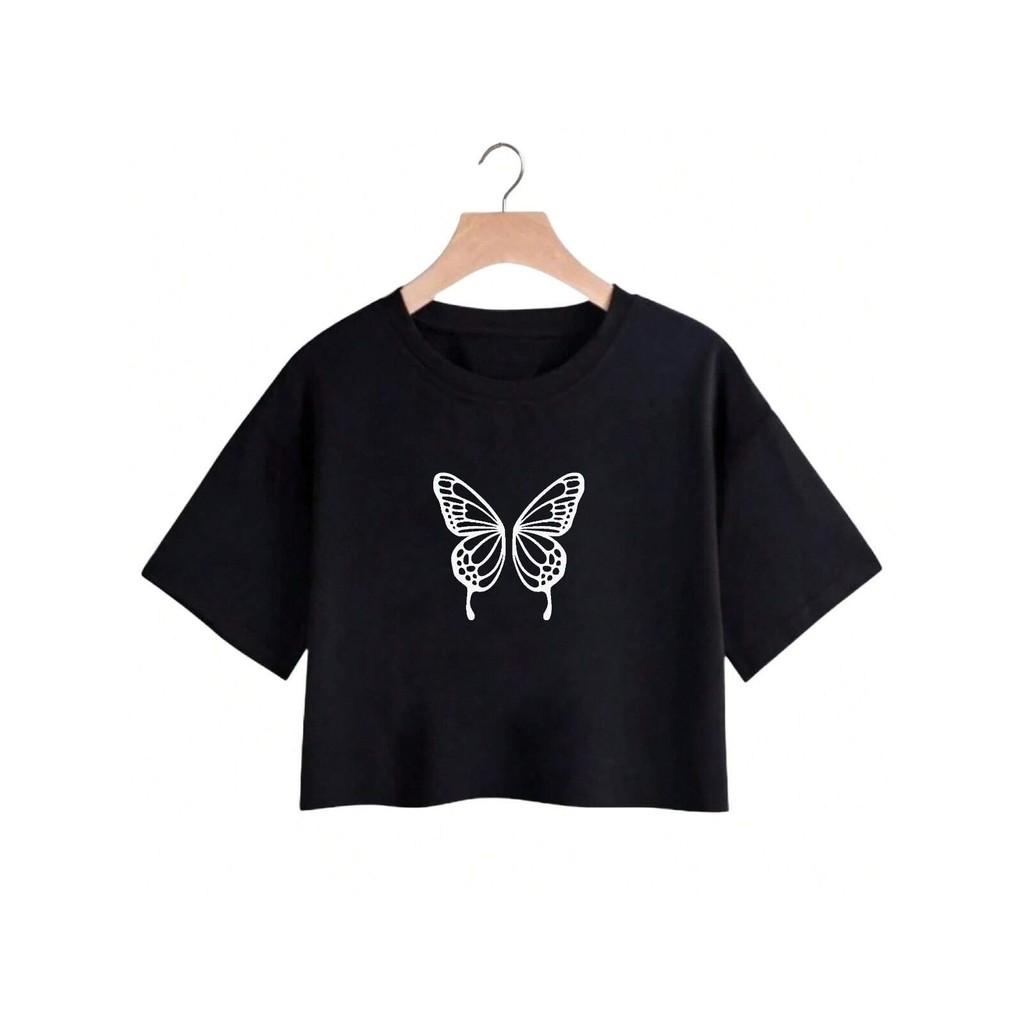 Kit 2 Cropped Camiseta Feminina Blusinha em Algodão Premium Borboleta Envio Imediato Lançamento