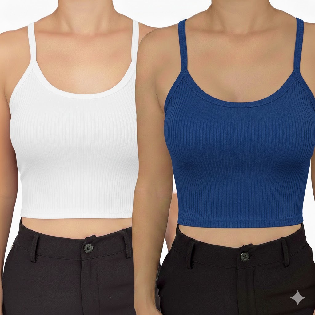 Kit 2 Cropped com Bojo Feminino Top Blusinha Blusa Ribana Alcinha Verao