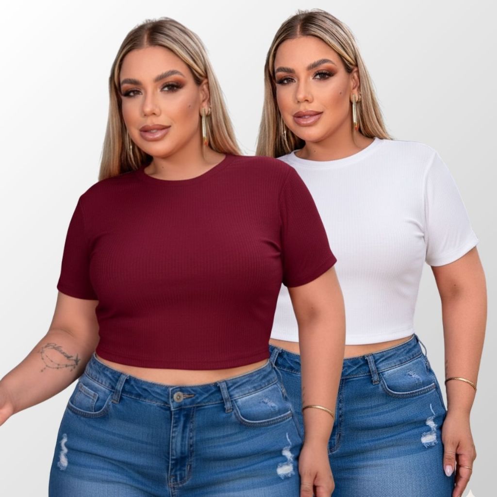 Kit 2 Cropped Top Plus Size Feminino Mais Vendido Oferta Basico Moderno Casual ate G4