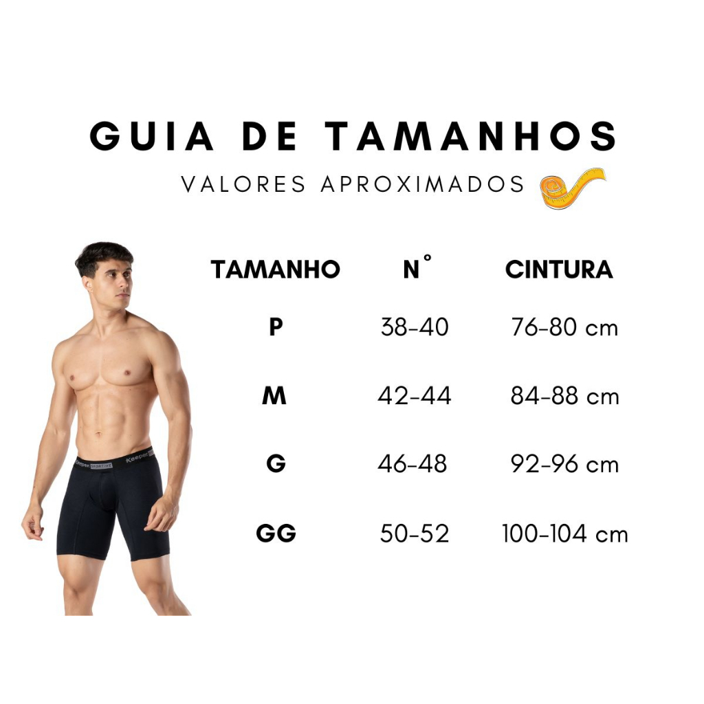 KIT 2 BOXER LONG LEG - ANTIASSADURA - COR PRETA Experimente a nova Cueca Boxer Long Leg e descubra o conforto e a praticidade que ela pode proporcionar. Com penas alongadas, bojo 3D e elástico personalizado de 40mm na cintura, essa cueca vai mudar a forma como você encara as suas roupas íntimas. Feita em malha Microfibra Soft com toque aveludado, ela é ideal para o dia a dia e ainda mais para a prática de esportes, pois suas pernas alongadas diminuem o atrito, prevenindo o surgimento de assaduras. Com a Cueca Boxer Long Leg, você não precisa mais abrir mão do conforto para estar na moda. Com a Cueca Boxer Long Leg, você não precisa mais escolher entre estilo e praticidade. Além de ser uma peça moderna e confortável, ela também é ideal para a prática de esportes, graças às suas pernas alongadas que diminuem o atrito e previnem o surgimento de assaduras na coxa. Então, se você busca uma cueca que ofereça total liberdade de movimento e conforto durante as atividades físicas, não deixe de experimentar a Cueca Boxer Long Leg. MEDIDAS: P - Nº38/40 Cintura: 76~80 cm M - Nº42/44 Cintura: 84~88 cm G - Nº46/48 Cintura: 92~96 cm GG - Nº50/52 Cintura: 100~104 cm Modelo: Boxer long lag Tamanho: P, M, G e GG Tecido: Microfibra Composição têxtil: 92% Poliamida, 08% Elastano Elástico: 40mm Conteúdo: 2 unidades do mesmo tamanho na cor preta