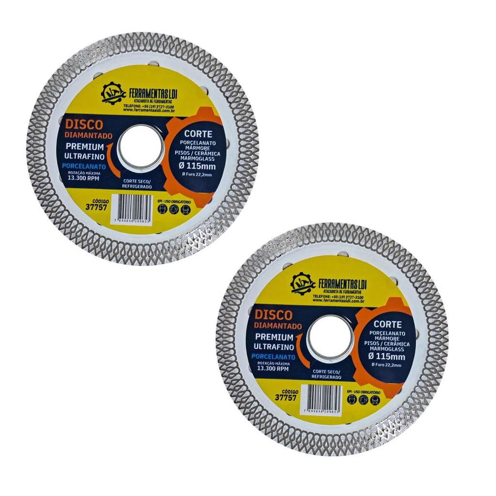 Kit 2 Disco Diamantado 115mm Corte Porcelanato Ultra Fino Ldi