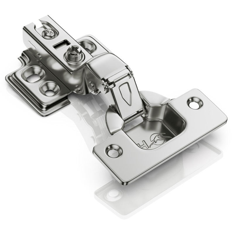 Dobradiça CURVA, RETA com amortecedor **BRINDE PARAFUSOS 4,0X16** Dobradiça com amortecedor interno que proporciona um fechamento suave e silencioso sem bater a porta, garantindo maior durabilidade e sofisticação ao seu móvel. Material: aço niquelado. Diâmetro do caneco Ø: 35mm. Calço: 4 furos.