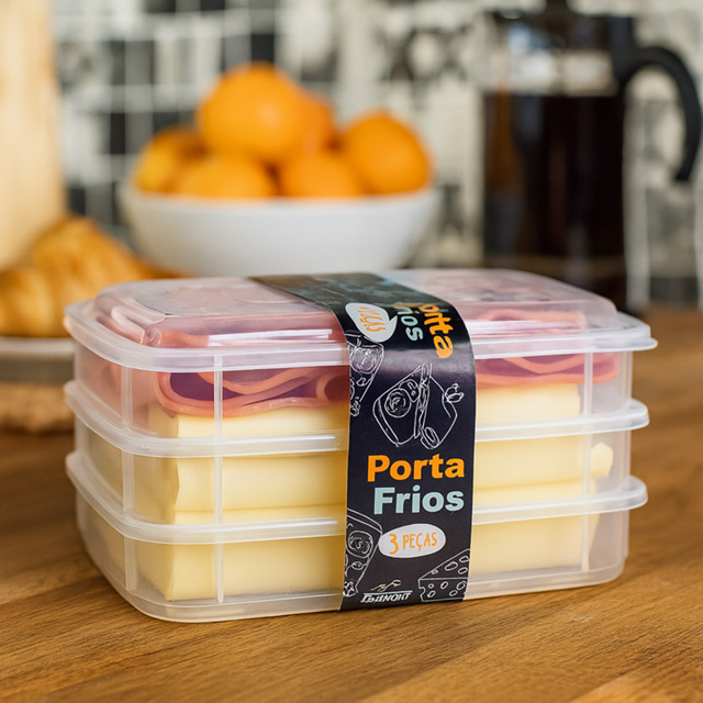 Kit 2 e 3 Peças Porta Frios Geladeira Com Tampa Hermético Fitnes Alface Tomate Frios Frutas Presunto