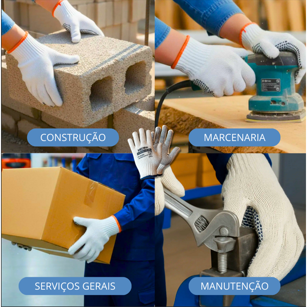 ⚠️ ATENÇÃO: O valor exibido refere-se à menor quantidade disponível. Escolha o kit desejado antes de finalizar a compra. LUVA TRICOTADA COM PIGMENTO ANTIDERRAPANTE IDEAL PARA TRABALHOS QUE EXIGEM PROTEÇÃO, CONFORTO E FIRMEZA NO MANUSEIO. A LUVA TRICOTADA COM PIGMENTO POSSUI REVESTIMENTO EM PVC NA PALMA, PROPORCIONANDO MAIOR ADERÊNCIA E SEGURANÇA DURANTE O USO. INDICADA PARA: • LOGÍSTICA E ARMAZENAGEM • CARGA E DESCARGA • CONSTRUÇÃO CIVIL • SERVIÇOS GERAIS • MANUTENÇÃO E USO INDUSTRIAL CARACTERÍSTICAS: • MALHA TRICOTADA RESISTENTE E FLEXÍVEL • PIGMENTOS ANTIDERRAPANTES NA PALMA • CONFORTO TÉRMICO E BOA VENTILAÇÃO • AJUSTE ANATÔMICO ÀS MÃOS • PERMITE MAIOR DESTREZA E PRODUTIVIDADE PROTEÇÃO, PRATICIDADE E ÓTIMO CUSTO-BENEFÍCIO PARA O DIA A DIA DE TRABALHO.