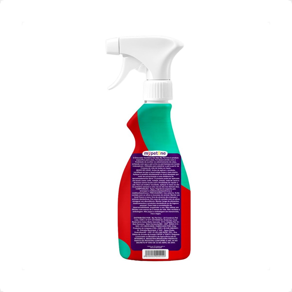 Educador Sanitário Xixi Não Mypetone - 500mL - Facilidade e comodidade na convivência com o seu melhor amigo; - Não mancha os objetos que o liquido entra em contato; - Auxilia o pet a realizar o xixi no local que você desejar; - Não prejudica olfato ou a saúde do seu pet; - Ajuda a educar o pet sem estresse; - Não tem odor para os humanos. Detalhes O Educador Sanitário Xixi Não Mypetone, são produtos indicados para auxiliar no adestramento sanitário para cães. Impedindo que seu pet, faça xixi em locais indesejáveis para você. Dicas Especiais Antes de aplicar o Educador Sanitário Xixi Não, certifique-se que o local esteja limpo e sem cheiro. Aplique o produto diretamente no local desejado por meio de pulverização a uma distância de aproximadamente 30cm. O produto pode ser aplicado em locais como: sofá, rodapé, mesas, roda de carro e diversos outros locais com a finalidade de repelir o pet. Para um melhor resultado, aplique 3 vezes ao dia na primeira semana e uma vez ao dia nos demais dias. Indicação: Cachorros, Gatos Porte/Raça: Raças Pequenas, Raças Médias, Raças Grandes Idade: Filhotes, Adultos, Idosos Composição: Educador Xixi Não: Água, fragrância espanta pet, bronopol e metilcloroisotiazolinona e metilisotiazolinona. Apresentação: 500mL
