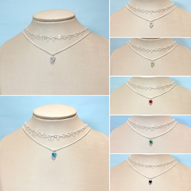 Kit 2 elegantes colares em formato de coração para mulheres com pingentes de zircônias coloridas, banhados a prata 925