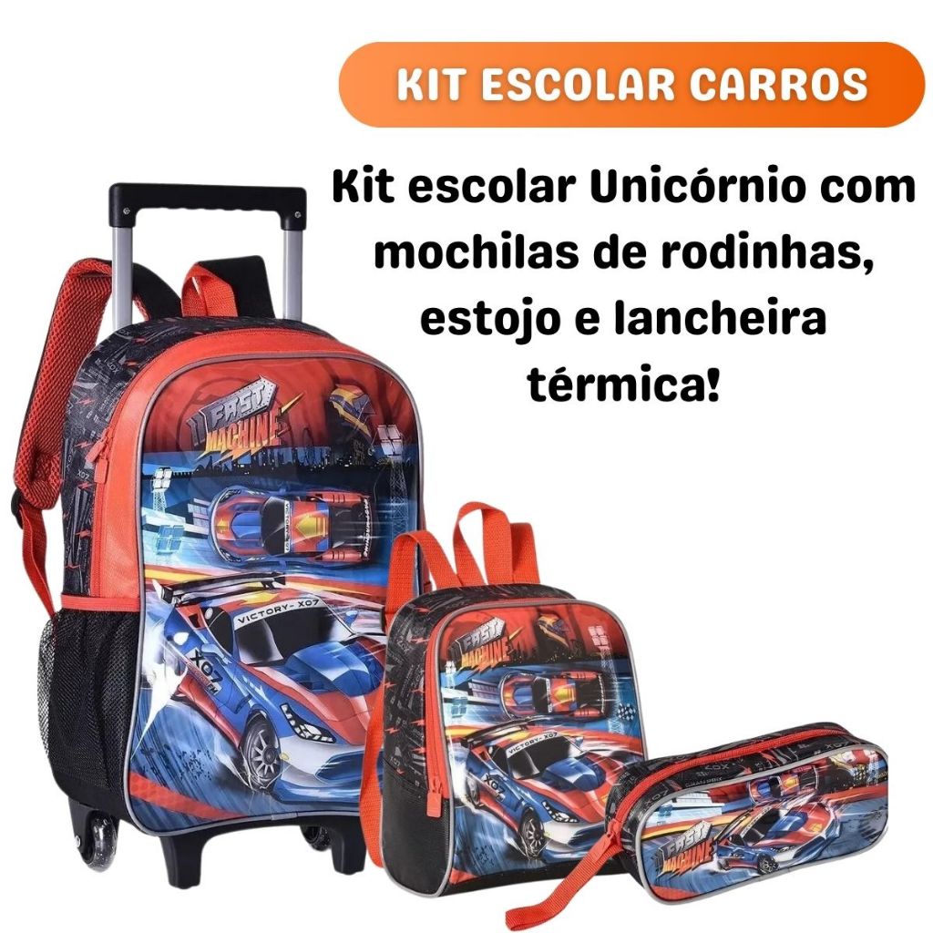 Kit 2 Em 1 Mochila Infantil Menino Carros Linda Reforçada Prática Grande