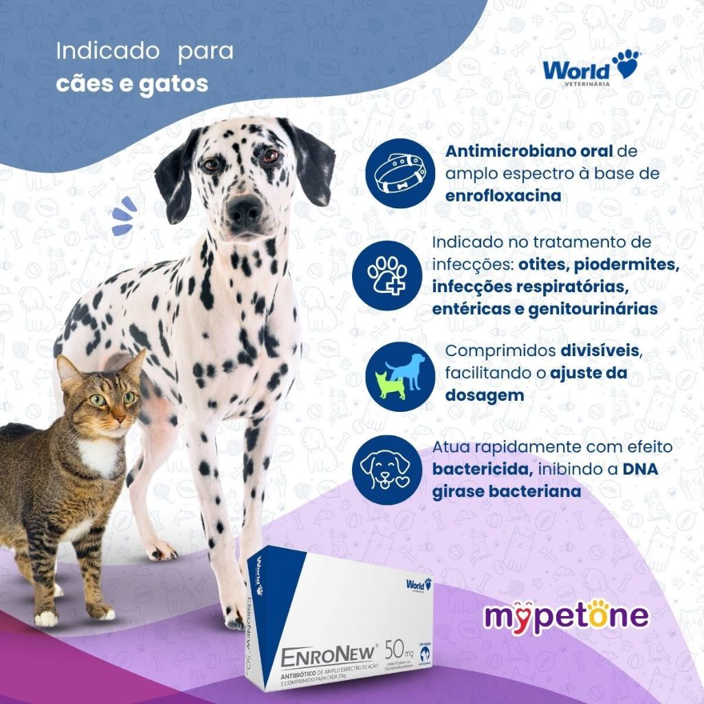 Kit 2 EnroNew World 50mg para Cães e Gatos de até 10kg - 10 Comprimidos