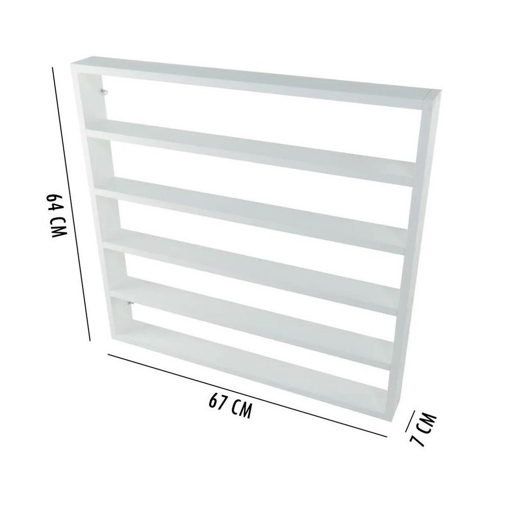 2 NICHOS EXPOSITORES PARA ESMALTES MEDIDAS DO EXPOSITOR: - Altura: 64 cm - Largura: 7 cm - Comprimento: 67 cm DESCRIÇÃO DO EXPOSITOR: - Acompanha suporte de fixação, parafusos e buchas. - Com 5 prateleiras para 200 esmaltes. - Fabricado em MDP/MDF de 15 mm. - Suporta até 30 Kg. - Branco Deixe o seu salão mais bonito e sofisticado com o nosso Expositor de Esmaltes. Também pode ser usado em diversos ambientes tais como salão, estética, ateliê de costura, ateliê de pintura e até mesmo brinquedos em miniaturas no quarto das crianças. *Os esmaltes não acompanham o produto. Dúvidas Frequentes: 1. Os produtos são enviados desmontados? R. Sim, para evitar danos no transporte nós enviamos os nossos produtos desmontados. 2. A montagem é fácil? R. Muito fácil, os nossos produtos podem ser montados apenas com uma simples chave philips, além disso, acompanha manual de montagem, todos os furos já feitos, parafusos e acessórios. 3. O produto está disponível à pronta entrega? R. Todos os nossos produtos são para pronta entrega. 4. O produto acompanha nota fiscal? R. Emitimos nota fiscal para todos os clientes que compram os nossos produtos. 5. Como são realizadas as entregas? R. As entregas são feitas exclusivamente através do Shopee Xpress que pertence a Shopee. Toda a Responsabilidade da entrega e calculo no valor de frete pertence a Shopee. 6. Quando o pedido é despachado? R. Pedidos com pagamento confirmado são despachados no prazo estipulado pela Shopee, habitualmente nós despachamos em no máximo 24hs. Ainda tem alguma dúvida? Utilize o campo de perguntas a baixo que responderemos o mais rápido possível. Política de devolução: A política de devolução da WGL ECOMMERCE é bastante flexível, aceitamos devoluções por qualquer motivo em até 07 (sete) dias corridos após o recebimento do seu pedido. A devolução também é válida caso seja o produto esteja em desacordo com o pedido ou nota fiscal. Garantia: 90 dias contra possíveis defeitos de fabricação.