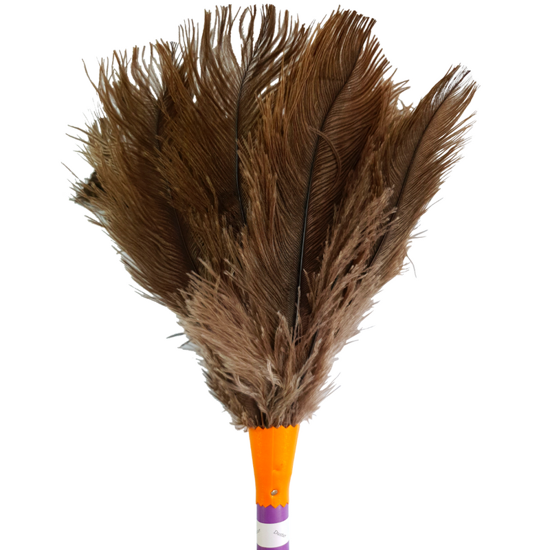 Produto: Contém 2 Espanadores Composto por Plumas de Avestruz. Materiais do cabo: Madeira plástificada e Aço. Indicações para Limpeza: Tira pó Móveis, Carros, Computadores, Locais com difícil acesso: prateleiras de lojas, vitrines, limpezas de peças de cristal, lustres, etc. Observação: Como se trata de um produto com penas naturais de avestruz, pode haver variação de até 2 cm para mais ou para menos no tamanho total do espanador.