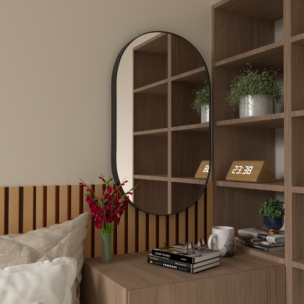 Kit 2 Espelhos Oval Grande Com Moldura Couro Eco 80x50 cm