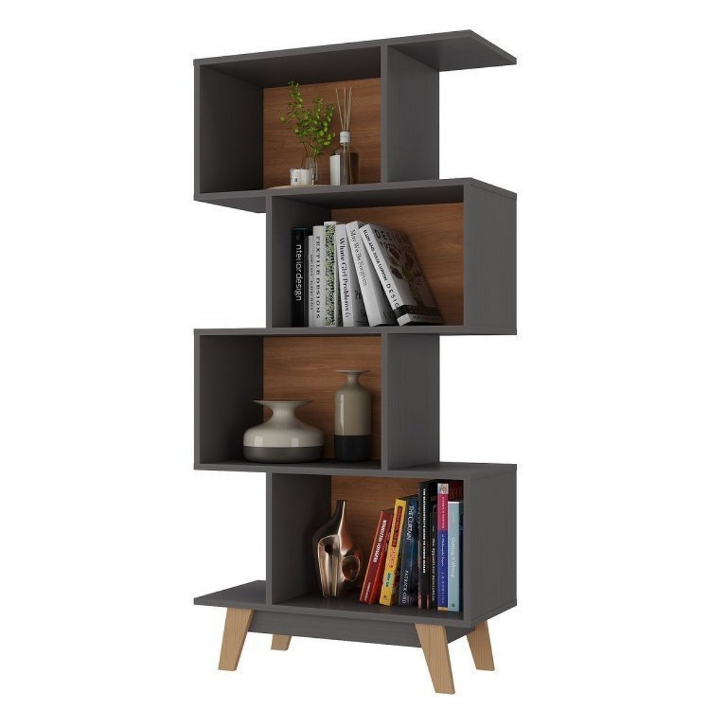 Kit 2 Estantes para Livros Caracas 4 Nichos Grafite/Nogal