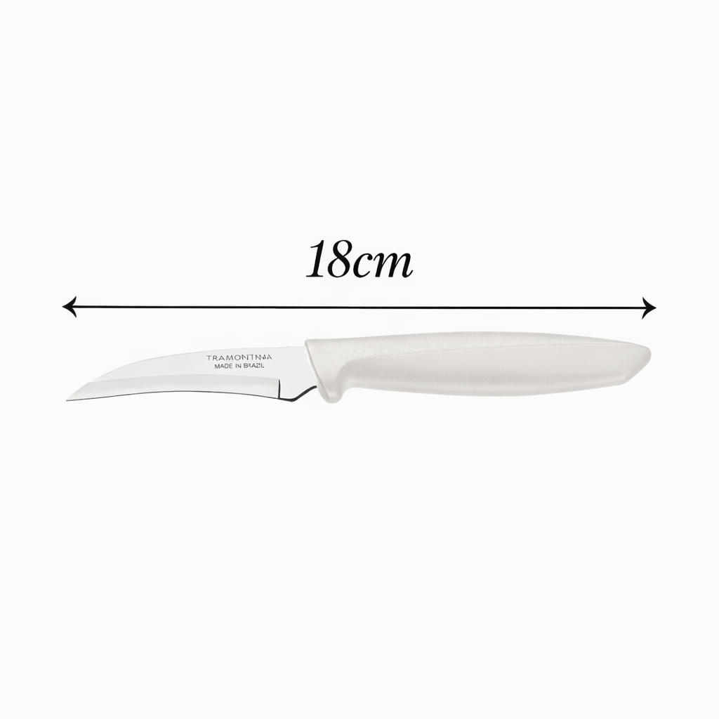 Desde 1994 no centro do Rio de Janeiro, o Bazar Franciscão é conhecido pela variedade e pelo preço baixo de verdade. Agora é só clicar: os melhores produtos, com economia, chegando rapidinho direto na sua casa! Kit com 2 facas Tramontina ideais para legumes, frutas e trabalhos de torneio. A lâmina curva permite mais precisão no descasque e nos acabamentos, facilitando o uso no dia a dia da cozinha. Medidas: - 18cm (total) - lâmina: 7,5cm - cabo: 10,5cm Destaques do produto: - Lâmina curva ideal para tornear e descascar - Aço inox resistente e durável - Leve, prática e fácil de manusear - Qualidade e confiança Tramontina - Kit com 2 unidades Perfeita para quem busca precisão, agilidade e acabamento profissional na cozinha.
