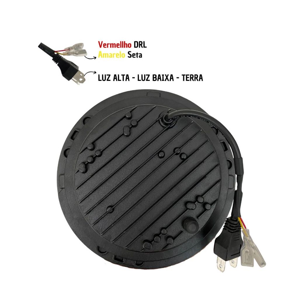 Par Farol Angel Eyes Led 7 Polegadas Universal Jeep Troller Fusca Kombi CARACTERISTICAS Tamanho: 7 Polegadas - 18cm Potência luz alta (und): 60W / 8000 Lumens Potência luz baixa (par): 40W / 4000 Lumens Tipo de luz: Alta, baixa, seta, DRL/diurna Temperatura da cor: 6000-6500K Resistente à água: IP67 Tensão de operação: 10-30V DC Material: Alumínio injetado alta qualidade Material da lente: Policarbonato (Não trinca com choque térmico) Cor do angel eyes: Branco para luz diurna, âmbar para pisca Vida útil estimada: 30.000 Horas Consumo (12V): Luz baixa 2.0A / Luz alta 3.0A Consumo (24V): Luz baixa 1.0A / Luz alta 1.8A MEDIDAS: Largura total: ±18cm Profundidade total: 9,5cm Profundidade traseira: 7,5cm INSTALAÇÃO: Fácil adaptação, pois já possui plug H4 e H13 Item Incluso: 2 Farol Angel Eyes Led 7 Polegadas. Não acompanha Suporte! APLICAÇÃO FUSCA, KOMBI, JEEP, WRANGLER, CAMINHAO Serve para qualquer modelo de motocicleta com farol redondo de 7 polegadas Serve para Harley Davidson Modelos adequados para Dyna SwitchBackFLD: 2014, 2016 Serve para Softail conversível cvo flstse: 2010-2012 Serve para Softail Cross Bones flstsb: 2008-2011 Serve para Softail Deluxe cvo flstnse: 2014-2015 Serve para Softail Deluxe efi flstni flstn: 2005-2017 Serve para Softail FatBoy: 2001-2017 Serve para Softail Softail Heritage Classic Springer Classic efi flsti flstc flsts: 1991-2017 Serve para Softail Nostalgia flstn: 1993-1996 Adequado para SoftailSlim fls S flss: 2012-2017 Serve para Touring Electra GlideClassic cvo flhtcse efi FLHTCUIPolice flhtp: 1994-2017 Serve para Touring Road King Classic efi flhrci Police ca flhr: 1994-2017 Serve para Touring Street Glide cvo flhxse efi flhxi flhx: 2006-2017 Serve para Touring Street Glide Especial flhxs: 2014-2017 Serve para Touring Ultra Limited: 2010-2017 Serve para Trike FreeWheelerFLRT: 2015-2017 Serve para Trike Street Glide flhxxx: 2010-2011 Serve para Trike TrigLide Ultra Classic flhtcutg: 2009-2017 Serve para modelos Yamaha Serve para Yamaha Road Star Edição Limitada XV1600A: 2003 Serve para Yamaha Road Star Midnight Star XV1600AS XV1700AM: 2001-2007 Serve para Yamaha Road Star mm Edição Limitada XV1600AS: 2000 Serve para Yamaha Road Star S XV1700AS: 2008-2013 Serve para Yamaha Road Star Silverado: 1999-2013 Serve para Yamaha Road Star XV1600A XV1700A: 1999-2009 Serve para Yamaha V-Star 1100 Classic XVS1100A: 2000-2009 Serve para Yamaha V-Star 1100 Silverado XVS1100AT: 2003-2009 Serve para Yamaha V-Star 650 Classic XVS650A: 1998-2010 Serve para Yamaha V-Star 650 Silverado XVS650AT: 2003-2010 Serve para Yamaha Road Star 1600 1999-2003 Serve para Yamaha Road Star 1600 Midnight 2000-2003 Serve para Yamaha Road Star 1600 Silverado 1999-2003 Serve para Yamaha Road Star 1700 2004-2009 Serve para Yamaha Road Star 1700 Midnight 2004-2007 Serve para Yamaha Road Star 1700 Midnight Silverado 2004-2007 Serve para Yamaha Road Star S 2008-2011 Serve para Yamaha Road Star Silverado 2004-2010 Serve para Yamaha Road Star Silverado S 2008-2011 Serve para Yamaha V Star 1100 Classic 2000-2009 Serve para Yamaha V Star 650 Classic 1998-2009 Para Jeep Wrangler TJ 2 Porta 1997 2006 Para Jeep Wrangler LJ Unlimited (4 Porta) 2004 2006 Para Jeep Wrangler JK 2 Porta 2 2007 2015 para Jeep Wrangler Ilimitado JK 4-Door 2007-2015 para Jeep CJ-8 Scrambler 1981-1985 para Jeep CJ-7 1976-1986 para Jeep Wrangler 1997-2015 para Land Rover Defender 90 1997 para Land Rover Defender 90 1995 para Land Rover Range Rover County Classic Sport Utility 4-Door 1995 para Land Rover 90/110 1983 a 1991 (incluindo 2.5N/A, 2.5 Turbo, V8) para Land Rover 90/110 Defender 200 Tdi para Land Rover 90/110 Defender 300 Tdi para Land Rover 90/110 Defender Td5 para Land Rover 90/110 Tdi Garantia do vendedor: 6 meses *Atenção - este não é um produto original de montadora, e sim paralelo para o mercado de reposição. ------------------------------------------------- - A AMPEC AUTOPEÇAS não se responsabiliza pelo mau uso ou instalação indevida do produto, sempre recomendamos que a instalação seja feita por um profissional especializado. - O produto é novo ? Sim, não trabalhamos com produtos usados, remoldados ou remanufaturados. -Tem disponibilidade do produto ? Temos disponibilidade de todos nossos produtos enquanto durarem os estoques. -O produto vem com nota fiscal ? Sim, todos nossos produtos acompanham nota fiscal. - Imagem ilustrativa utilizada para identificação e demonstração de produto. - As Marcas e Modelos citadas no anúncio, pertencem aos seus respectivos fabricantes, somente mencionadas como referências para o uso correto do produto, conforme artigo 31 da Lei: 8078 de 11.09.1990 * Não temos qualquer vínculo com estas empresas. Infelizmente não emitimos NF para revenda fora do estado do Paraná. Desculpe. Fora do estado atendemos apenas destinado a consumidor final.