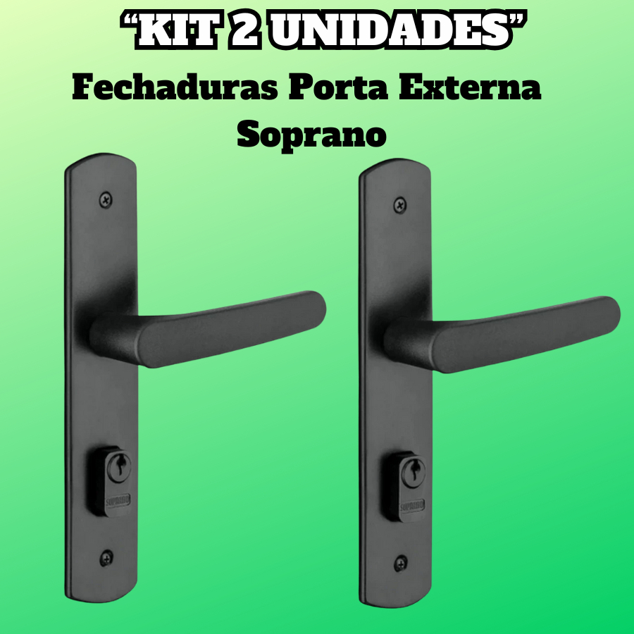 Kit 2 Fechaduras Porta Externa | Modelo Ipanema Reta | Preta | Soprano