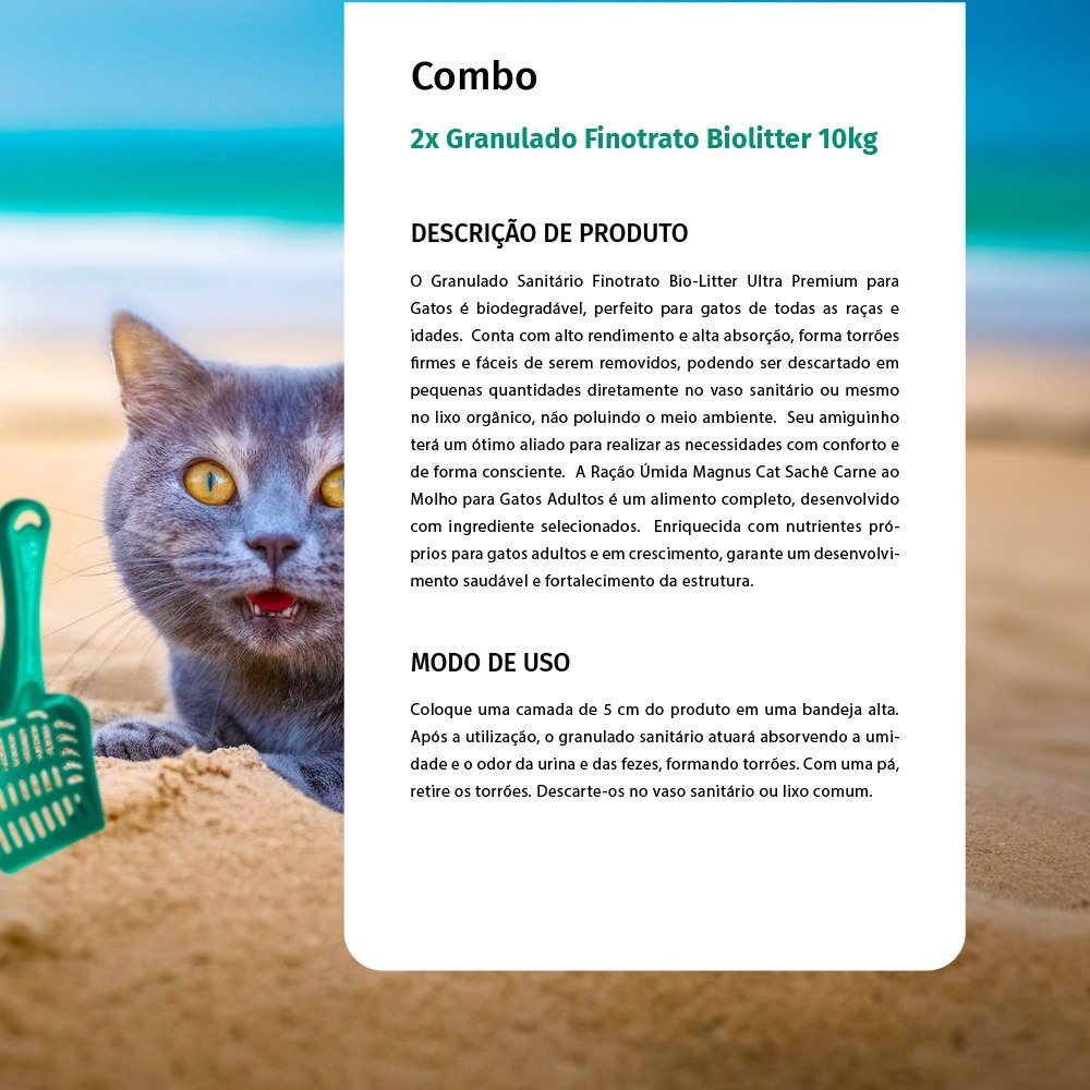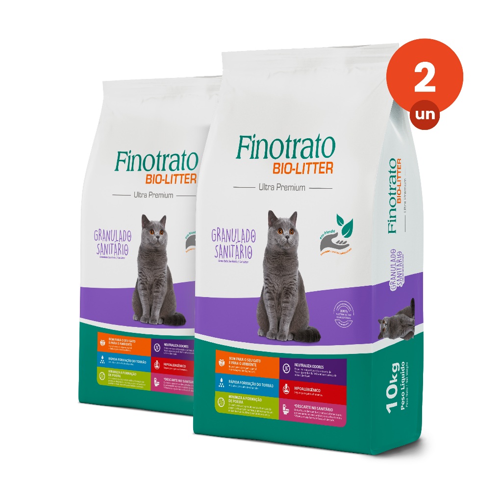 Kit 2 Finotrato Bio-litter Granulado Sanitário Ultra Premium para Gatos 10kg