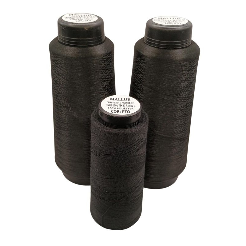 2 fios com 100g cada, para costura overlock + 1 linha com 2 mil jardas para costura reta. ambos bem lubrificados com silicone puro, para deslizar bem na agulha e não esquentar.