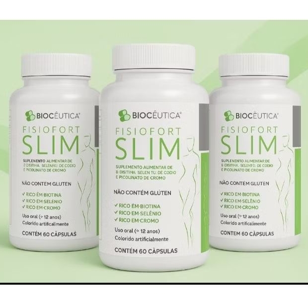 Fisiofort Slim - Biotina + Selênio + Picolinato de Cromo - 60 caps - Biocêutica Suplemento Alimenatar em Cápsulas de Biotina, Selenito de Sódio e Picolinato de Cromo é a base de Vitamina B7, que estimula a produção de queratina necessária para a saúde do cabelo, além de promover a hidratação. Também é importante para a pele, já que a mantém saudável e evita o ressecamento.Uma das principais funções do selénio é formar a enzima antioxidante glutationa peroxidase, assim o selénio contribui para proteger as células contra o dano oxidativo. O selénio também contribui para a função tiroideia normal, mantém o cabelo e as unhas em bom estado, contribui para o ótimo funcionamento do sistema imunitário e a correta espermatogénese.O Picolinato de Cromo é indicado para atletas e praticantes de atividades físicas que desejam melhorar o desempenho e a performance, ajudando no aumento da massa muscular, na redução da gordura corporal, no desenvolvimento da musculatura e na obtenção de energia.
