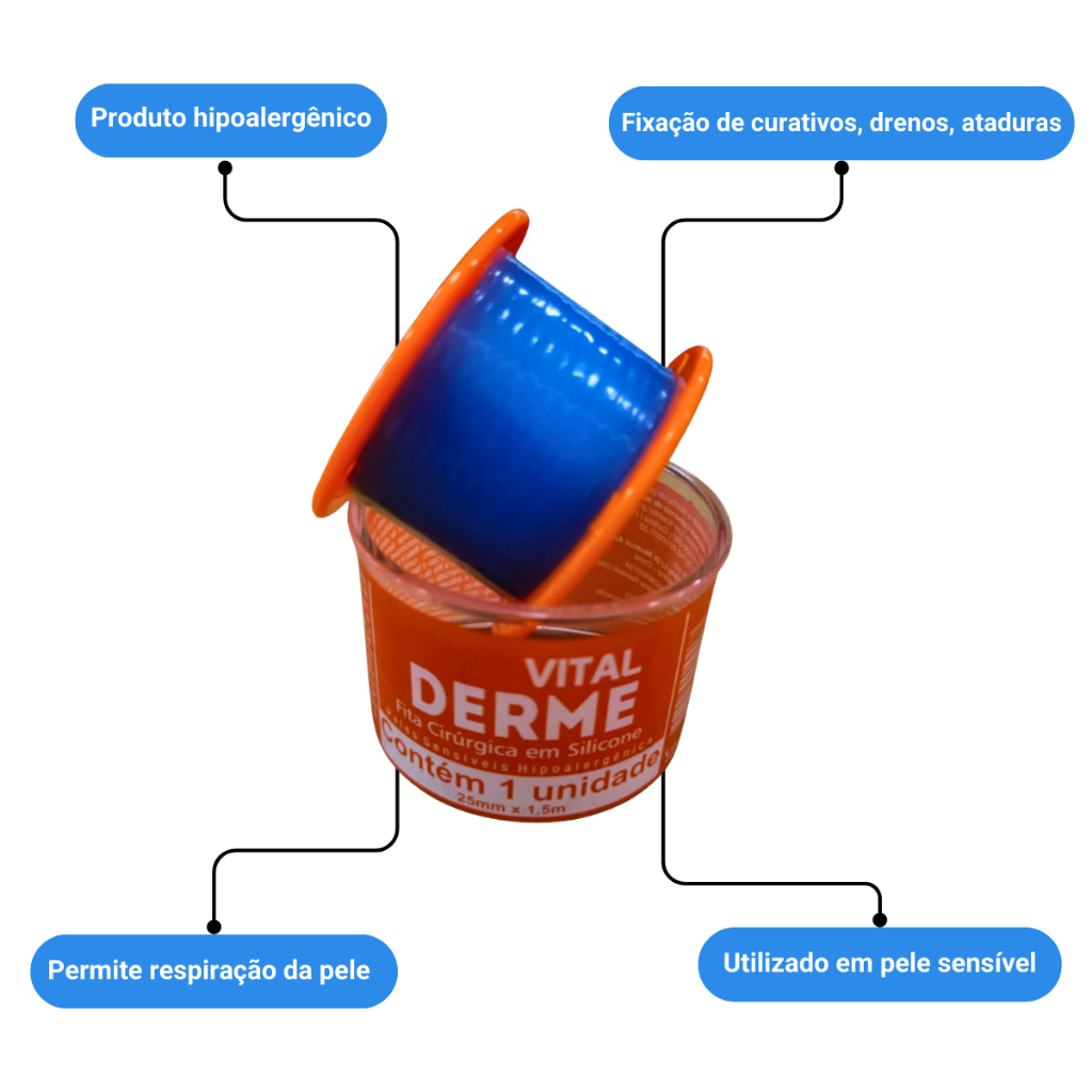 Kit 2 Fitas Cirúrgicas de Silicone Hipoalergênica Vital Derme 25mm x 1,5m Pele Sensível