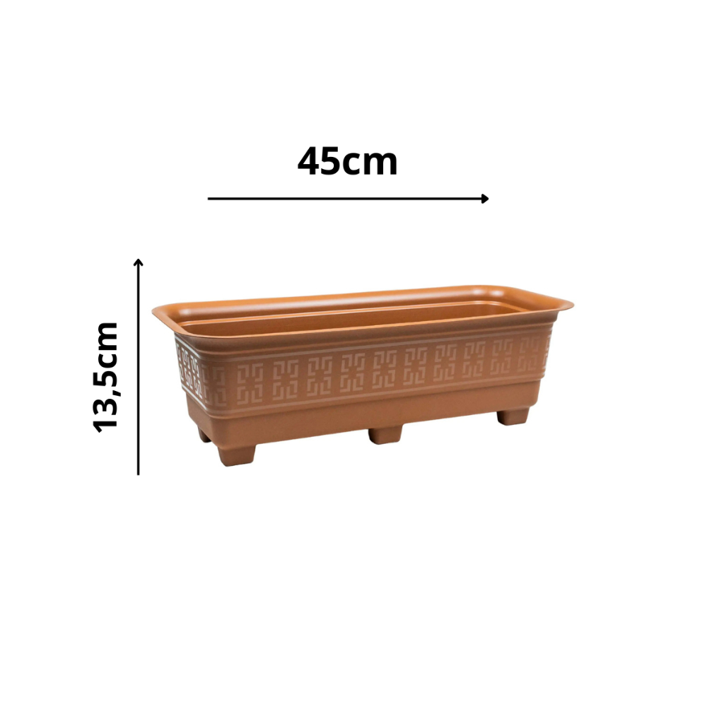 KIT 2 VASOS PLÁSTICO RETANGULAR - 6 LITROS Decore seu jardim com estilo e praticidade! Características: - Kit com 2 unidades - Capacidade: 6 litros cada - Medidas: 13,5cm x 19cm x 45cm - Material: Plástico reforçado e resistente - Ideal para: hortas, decoração, plantas, flores, suculentas, cactos e mudas Benefícios: - Resistente ao sol e chuva - Fácil de limpar e manter - Ótimo para decoração de jardins e espaços internos Entrega: - Envio em menos de 24 horas