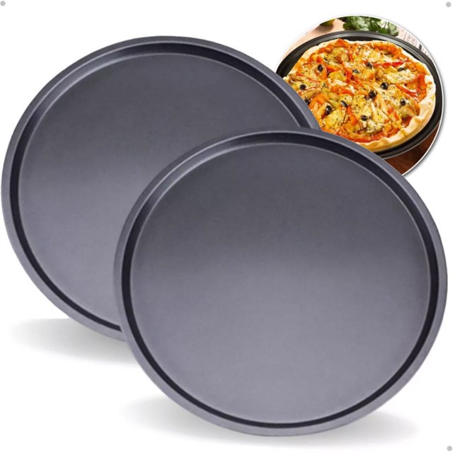 Kit 2 Formas Bandeja Grande Antiaderente Redonda Pizza Pão Queijo Forma 36cm ou 29CM