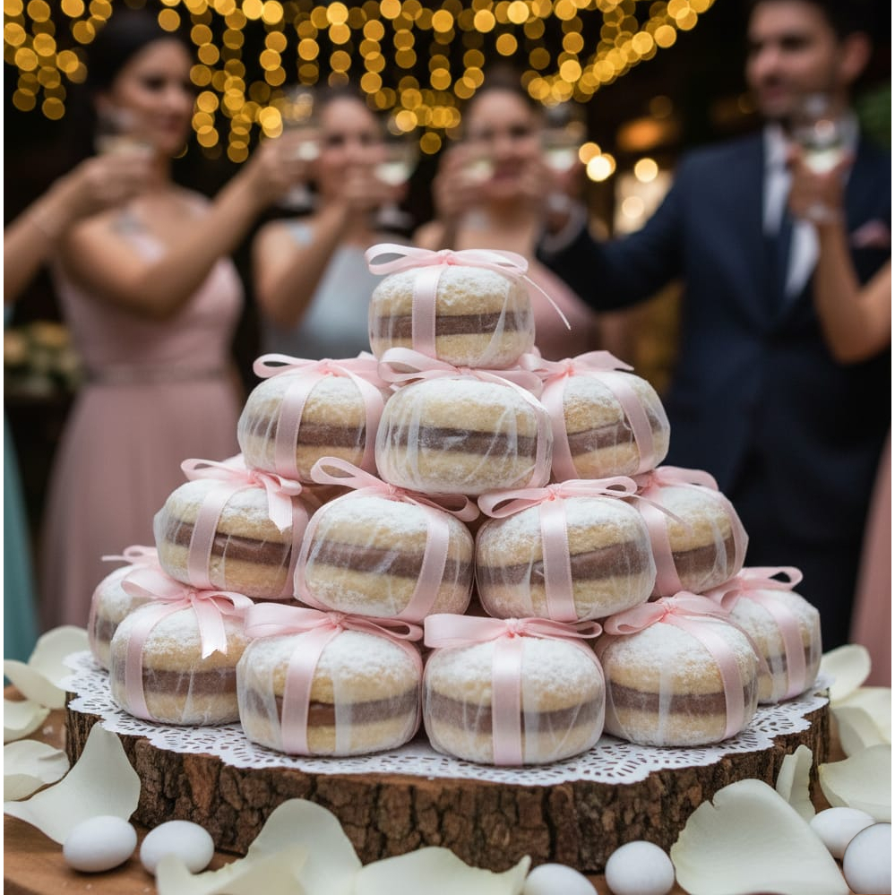 Assadeiras para Bem-Casado 24 Cavidades em Alumínio – Kit com 2 Peças Produza doces finos com praticidade e qualidade! As Assadeiras para Bem-Casado em Alumínio são ideais para quem deseja preparar esse clássico doce com perfeição. Feitas em alumínio resistente, garantem um cozimento uniforme, facilitando a produção em grandes quantidades e mantendo o padrão de qualidade em cada unidade. O bem-casado, tradicional em casamentos brasileiros e portugueses, simboliza sorte e prosperidade aos noivos. Com massa macia e recheio delicado, como doce de leite ou baba de moça, é um doce que encanta pela tradição e sabor. Especificações: Assadeira: 40,5 cm (C) x 31,5 cm (L) x 2 cm (A) Cavidades: 4,7 cm (fundo) x 0,5 cm (altura) x 6 cm (boca) Material: Alumínio de alta durabilidade Capacidade: 24 cavidades por forma Conteúdo: 2 peças Perfeitas para confeiteiros, docerias e quem ama preparar bem-casados artesanais com praticidade e acabamento impecável.