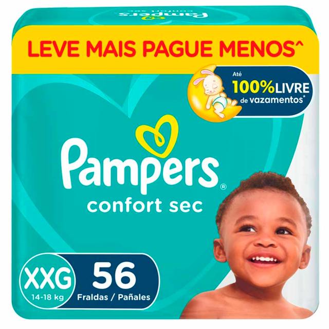 Kit 2 Fralda Infantil Pampers Confort Sec Tamanho XXG Leve Mais Por Menos com 56 Fraldas