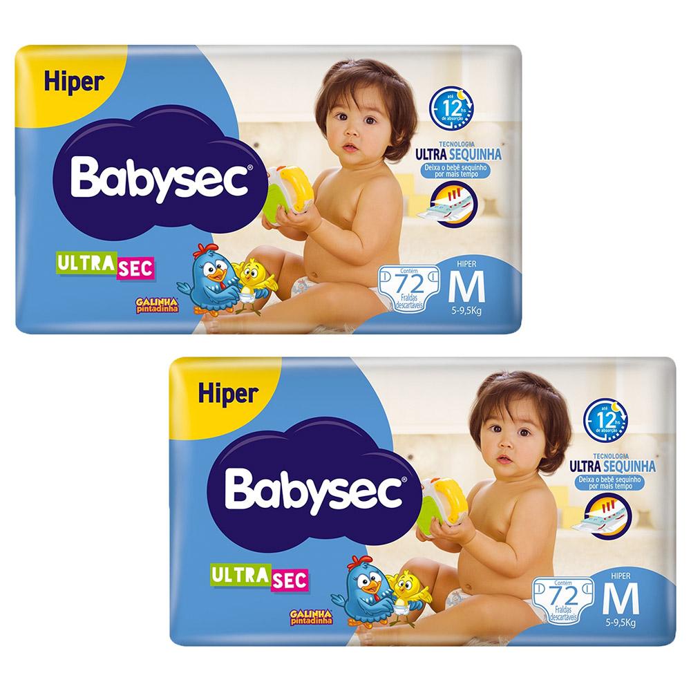 O Kit contém: 2 pacotes Fraldas Babysec Galinha Pintadinha Ultrasec Hiper Tamanho M com 72 unidades cada. A fralda infantil Babysec UltraSec Galinha Pintadinha Até 12h de Proteção possui exclusiva tecnologia de ultra absorção e retenção, trazendo maior proteção, conforto e segurança para o bebê. Tem fácil ajuste com fechos reajustáveis, barreiras reforçadas antivazamentos e cobertura com toque suave e decorada com vários desenhos divertidos.