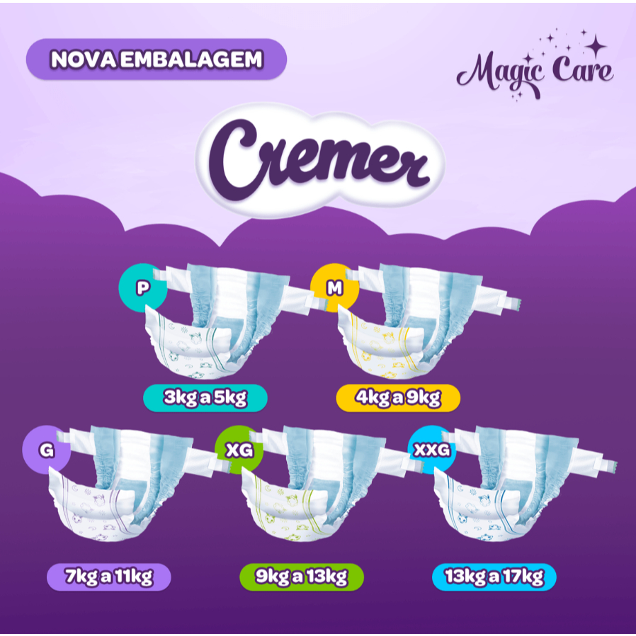 | Kit 2 Fraldas Cremer Hiper M 68 Unidades este produto | R$ 120,00 | — | 4.9/5 | 24 |