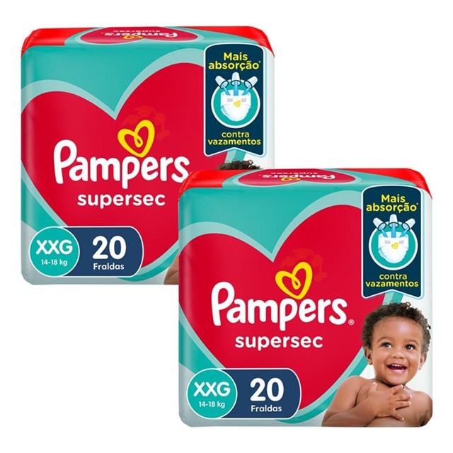 | Kit 2 Fraldas Pampers Supersec XXG 20 Unidades este produto | R$ 97,86 | 12% | — | — |