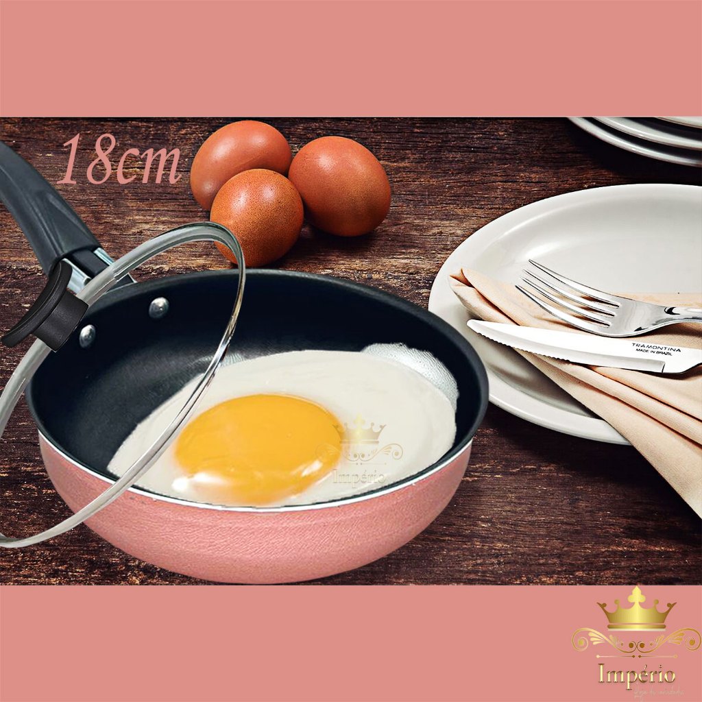 Prazer, somos a “Imperio Variedades”. Confira nossa loja, temos outros modelos, tamanhos e promoções A Arte de Misturas Sabores... Cozinhar é a arte de misturar sabores e encantar, é na cozinha que a mágica acontece, que os amigos se reúnem, que as alegrias se multiplicam... Beleza, charme, praticidade na hora de cozinhar, você vai se encantar, sua cozinha merece esse mimo! Frigideira 24cm Antiaderente Rosa e Frigideira 18cm com tampa de vidro temperado com Saída de vapor, o que permite visualizar o processo de cozimento dos alimentos. Design arrojado, beleza e muito charme, o diferencial desse Item, está em seu material, alumínio de alta qualidade, espessura de 1,2 mm, que confere ao item uma estrutura resistente garantindo a durabilidade e distribuição eficiente do calor, proporcionando o cozimento mais rápido e uniforme dos alimentos. Revestido com 5 camadas de antiaderente TEFLON (DuPont) - PFOA Free, internamente e externamente, evitando que o alimento grude na superfície, o que possibilita o preparo dos alimentos com menos gordura, além de proporcionar praticidade no momento da limpeza. Possui cabo reforçado ergonômico, feito em baquelite, material antitérmico que não retém calor, para garantir facilidade e máxima segurança no manuseio. Especificações Técnicas: Dimensões aproximadas - cm: (Altura x Largura x Comprimento - Capacidade volume): - 1 Frigideira Alta 24cm de diâmetro c/ tampa de vidro - cm 6 x 24 x 40 – 2,4L - 1 Frigideira Alta 18cm de diâmetro c/ tampa de vidro - cm 5 x 18 x 34,5 –1,2L Material: Alumínio Revestido Revestimento Externo: Antiaderente – Cor: Rosa Revestimento Interno: Antiaderente – Cor: Preto Espessura Material: 1,1mm Cabo: Baquelite Tampa: Tampa de Vidro Temperado Peso: 821 g Dimensões Embalagem caixa – cm (A x L x C): 41 x 28 x 8 cm Peso Embalagem - Caixa Parda: 120 g Recomendações: Antes do primeiro uso é necessário realizar a limpeza e a cura do item, imprescindível para durabilidade e proteção da camada antiaderente. Lave com esponja macia e detergente neutro, seque-a com um pano limpo. Unte a parte interna com óleo ou outra gordura e leve-a ao fogo baixo por 2 minuto. Deixe-a esfriar, lave, enxugue e está pronta para utilizar. Cuidados: - Para conservação e durabilidade do seu produto lavar somente om lado macio da esponja; - Evite a imersão do produto quente em água fria. Sempre o deixe esfriar antes de lavar; - Para mexer os alimentos use somente utensílios de silicone ou nylon; - Não exponha as alças e cabos diretamente ao fogo ou fonte de calor prolongado; - Não pode ser levada ao forno e/ou microondas; - Mantenha o produto sobre a chama do fogão apenas o necessário para o cozimento, sempre em fogo baixo ou médio (nunca superior a 350°C). Detalhes: - Garantia 30 dias contra defeitos de fabricação. - Itens decorativos não acompanham o produto. Imagens meramente ilustrativas - A cor do produto pode sofrer alteração de acordo com a qualidade do monitor. - Para descarte dos produtos e embalagens siga as orientações de reciclagem vigente. Estamos à disposição para qualquer dúvida. Agradecemos a sua visita e aguardamos seu pedido!