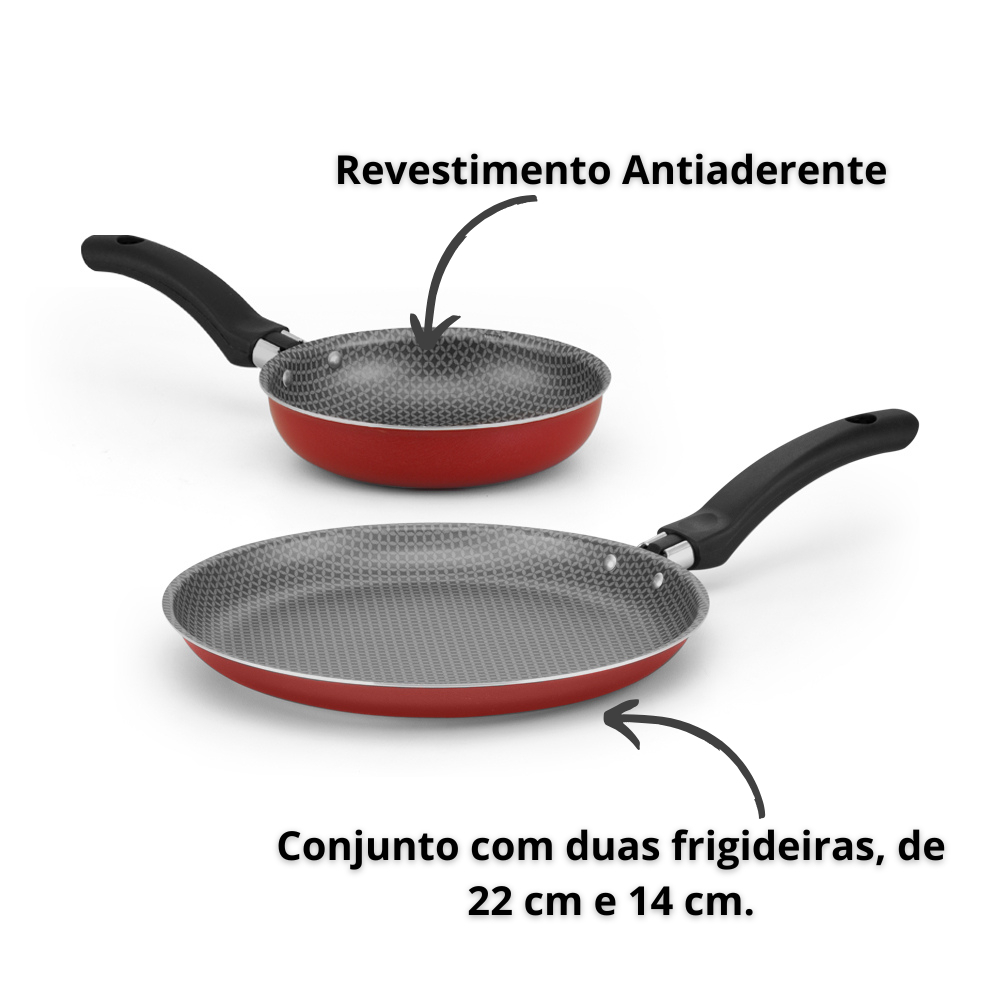 Kit 2 frigideiras Panquequeira 22cm e Frigideira de Fritar Ovo 14cm Antiaderente