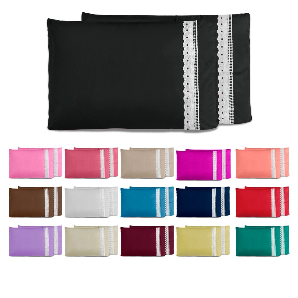 Kit 2 Fronhas 100% Algodão 400 Fios com Zíper e Babado para Cama Casal, Queen e King - Alta Qualidade Fronha 50x70