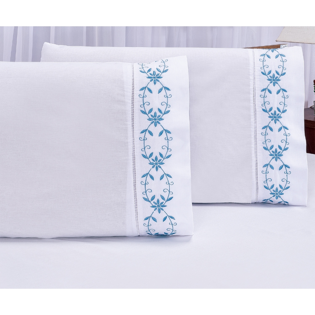 Kit 2 Fronhas Bordadas para Travesseiro com Ponto Palito Percal 400 Fios