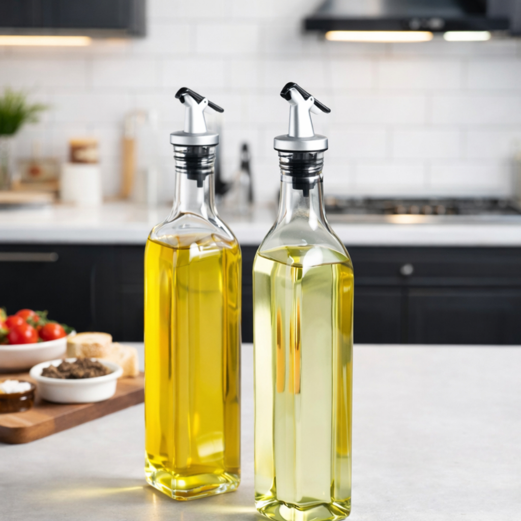 Kit 2 Galheteiros Dosador 500ml Vidro Premium com Bico Molho Shoyu Azeite Vinagre Pimenta Cozinha Culinária