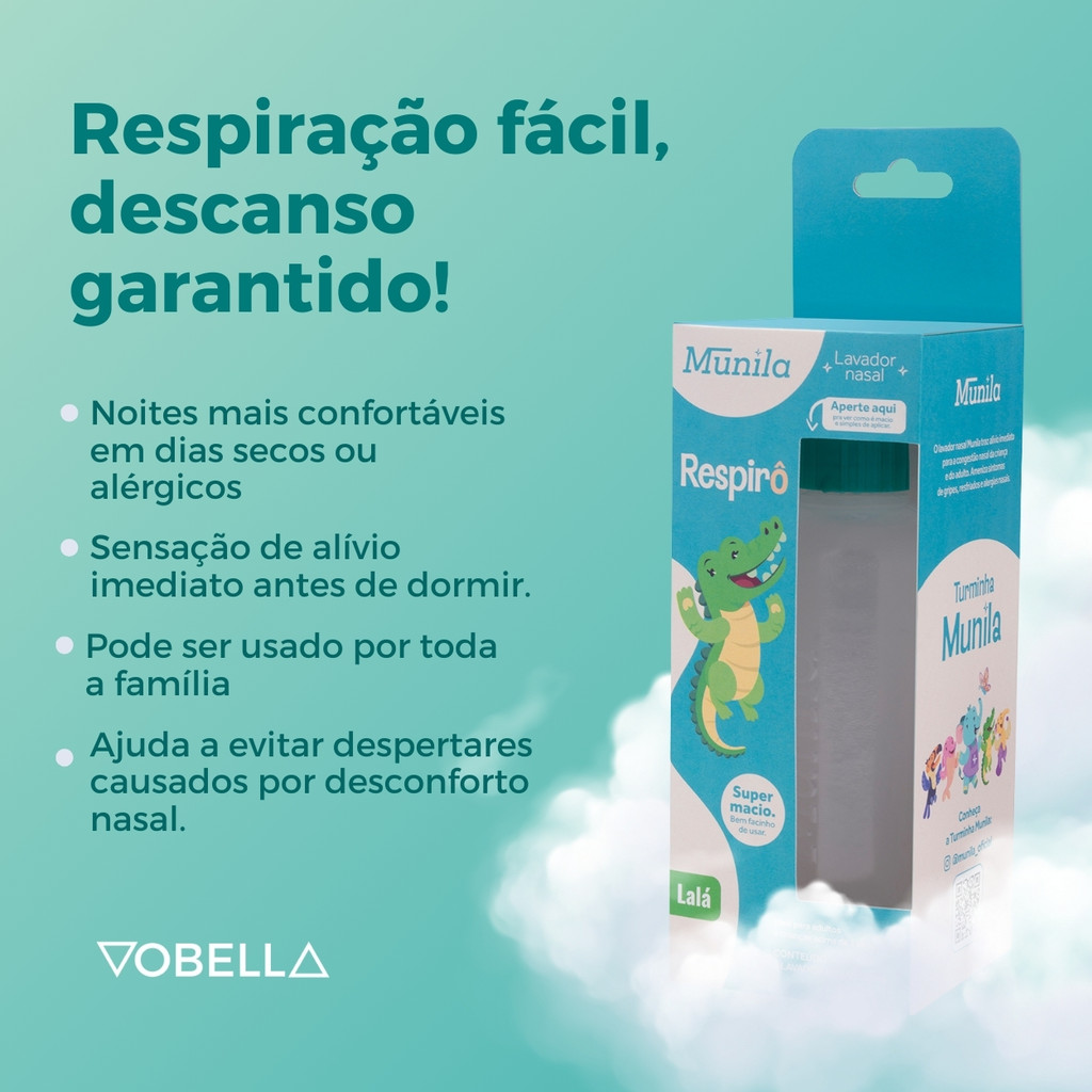 Respiração mais leve e saudável todos os dias com o Kit Respirô Munila: alívio imediato e prático para o desconforto nasal! Por que comprar o Kit Respirô Munila? Desenvolvido para adultos e crianças a partir de 3 anos, o Kit Respirô Munila facilita a higienização das vias nasais de forma segura e confortável. Ideal para quem sofre com rinite, sinusite ou congestão, ele ajuda na prevenção de infecções respiratórias e melhora a qualidade da respiração diária. Sobre o produto: -Lavador nasal com 220ml cada. -Marca: Munila. -2 Garrafas de Lavagem Nasal 220ml. -2 adaptadores de bico em silicone macio. -Auxilia no alívio de sintomas respiratórios. -Material 100% atóxico e reutilizável. -Reutilizável e fácil de higienizar. -Sistema de fluxo controlado. -Design ergonômico e seguro. -Uso com soro fisiológico. Indicado para: -Crianças a partir de 3 anos. -Adultos. -Pessoas com rinite ou sinusite. -Congestão nasal e resfriados. Modo de uso: -Adicione soro fisiológico no frasco limpo. -Feche bem e posicione o bico em uma das narinas. -Incline a cabeça levemente para o lado oposto. -Pressione para que o líquido flua pela outra narina. -Repita o processo do outro lado. -Em crianças, o adulto deve aplicar o produto, mantendo a posição confortável. Precauções: -Higienize bem antes do primeiro uso. -Utilize sempre com soro fisiológico. -Não compartilhe o lavador entre pessoas. -Este produto não é um brinquedo: mantenha fora do alcance de crianças. -Em caso de irritação, suspenda o uso e procure orientação médica. Com qualidade, conforto e eficácia, o Kit Respirô Munila é a escolha certa para cuidar da respiração de toda a família. Garanta o seu agora e sinta a diferença no dia a dia! Surgiu alguma dúvida? Entre em contato com a gente! Boas Compras :)