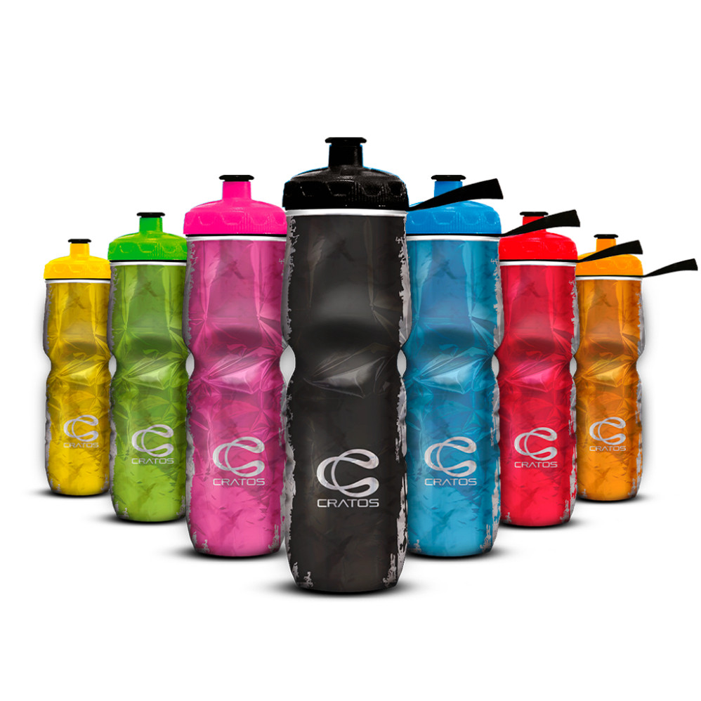 Novidade Cratos!! A Melhor do Brasil mudou! - As garrafas Isotérmicas Cratos Evoluíram, sem perder a qualidade. Com novos grafismos, estilos e cores novas! Características Cratos! Válvula Removível – As caramanholas Cratos possuem válvula atóxica e removível, que facilita a higienização. Alca para transporte – Além de ter a ergonomia projetada para o suporte das bicicletas, a garrafa também possui uma alça que facilita o transporte. Livre de BPA e Ftalatos – As caramanholas são produzidas com material livre de substâncias que podem causar doenças graves como Câncer. Até 3 horas gelada – Coloque metade de água na garrafa e leve ao freezer, no dia seguinte complete com água e terá recrescência por várias horas. Melhor Custo/Benefício – As garrafas Cratos são desenvolvidas com tecnologia de ponta. Fabricadas aqui no Brasil com qualidade e baixo custo! O KIT ACOPANHA: - 1 Garrafa Crômio Preta - 1 Garrafa Crômio de sua preferência
