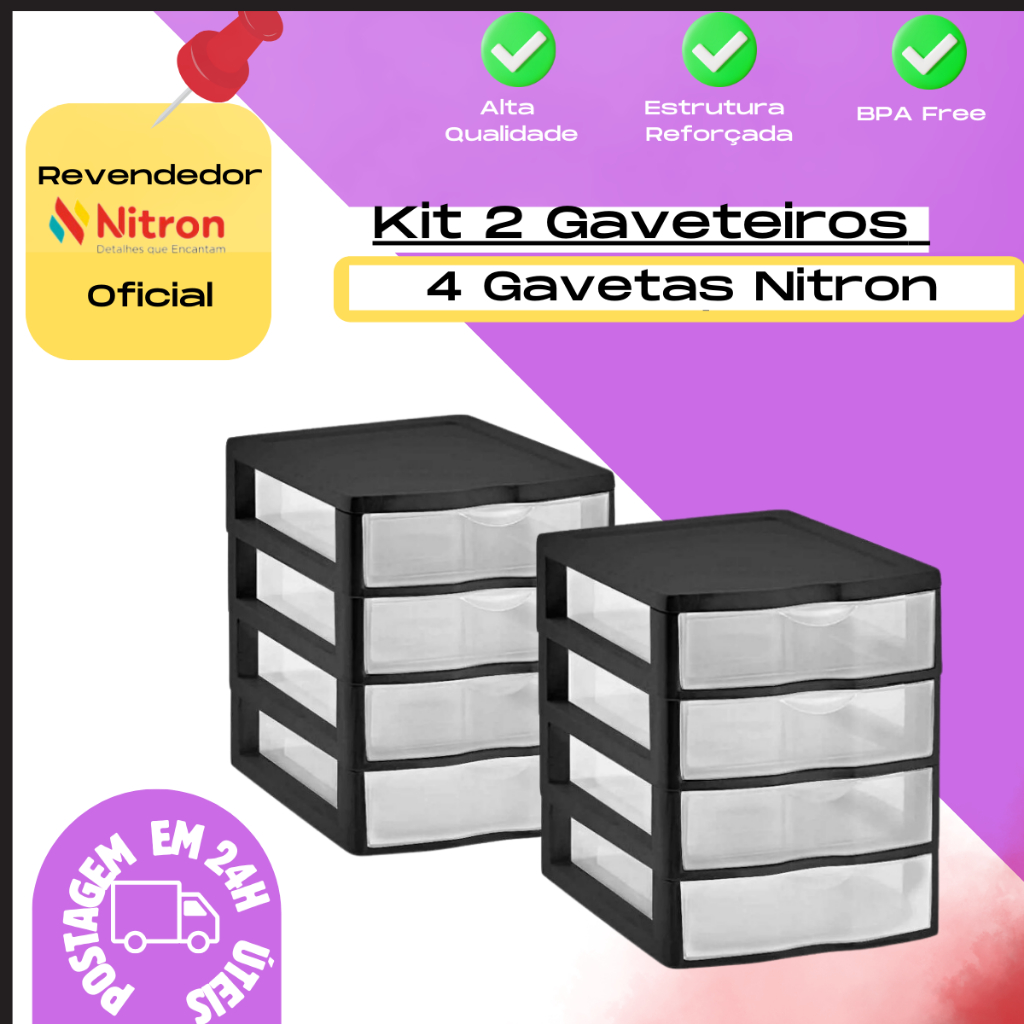 | Kit 2 Gaveteiro Plástico Organizador Multiuso C/4 Gavetas Nitron este produto | R$ 74,96 | 5% | 4.9/5 | 7 |