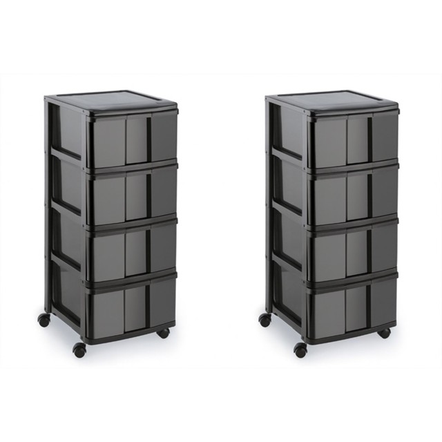 Kit 2 Gaveteiros Porta Tudo 4 Gavetas Com Rodas Organizador Multiuso Monte Líbano Cor Preto