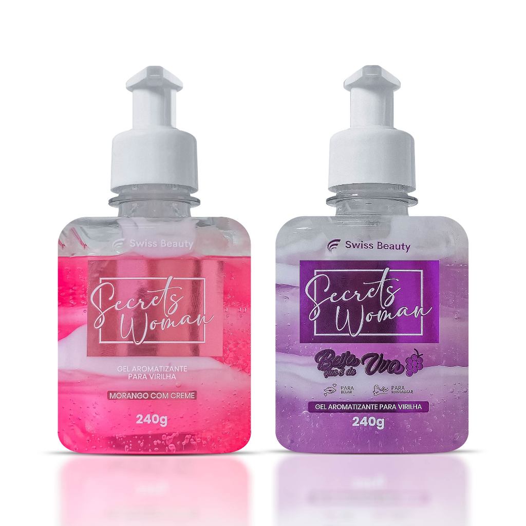 Kit 2 Gel Aromatizante Íntimo Beijável 240g 1 de Sabor Morango e 1 de Sabor Uva Cuidado Vaginal Swiss Beauty Belkit