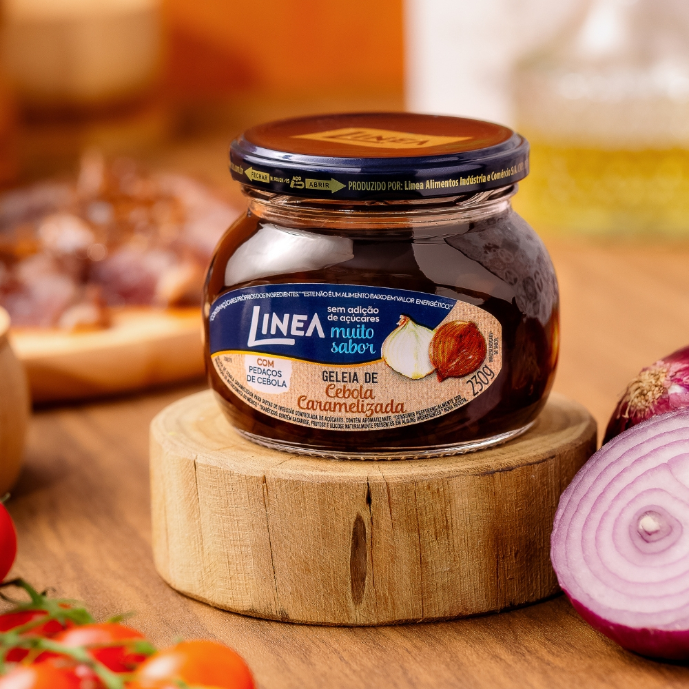 Geleia de Cebola Caramelizada Linea é Cremosa, sem açúcar, cheia de sabor e pedaços de cebola. Perfeita para pratos salgados, essa delícia é capaz de transformar suas refeições, adicionando um toque agridoce irresistível. 1 KIT COMPOSTO POR: - 2 unidades de Geleia Linea Sabor Cebola Caramelizada de 230g (cada). INGREDIENTES: Vinagre, cebola desidratada, suco de limão, extrato de chá preto, concentrado de pimenta dedo de moça, edulcorante: sorbitol, estabilizante pectina, aromatizante, conservador sorbato de potássio e agente de firmeza fosfato tricálcico. NÃO CONTÉM GLÚTEN.