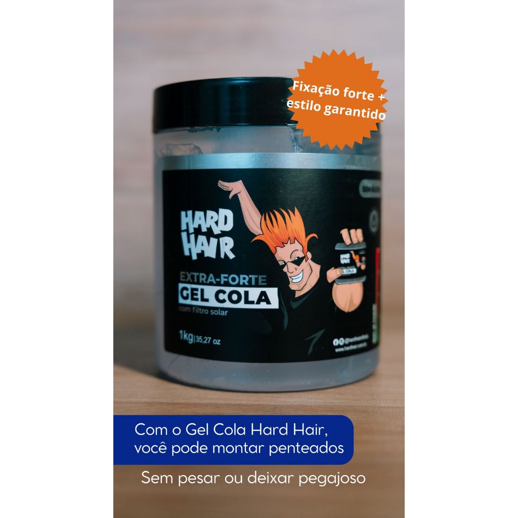 O Gel cola Hard Hair proporciona um acabamento de aspecto molhado, formulado para fixar e modelar os cabelos,proporcionando estilo e fixação ao penteado. Máxima fixação para todos os tipos de cabelos. Sem deixar residuo.