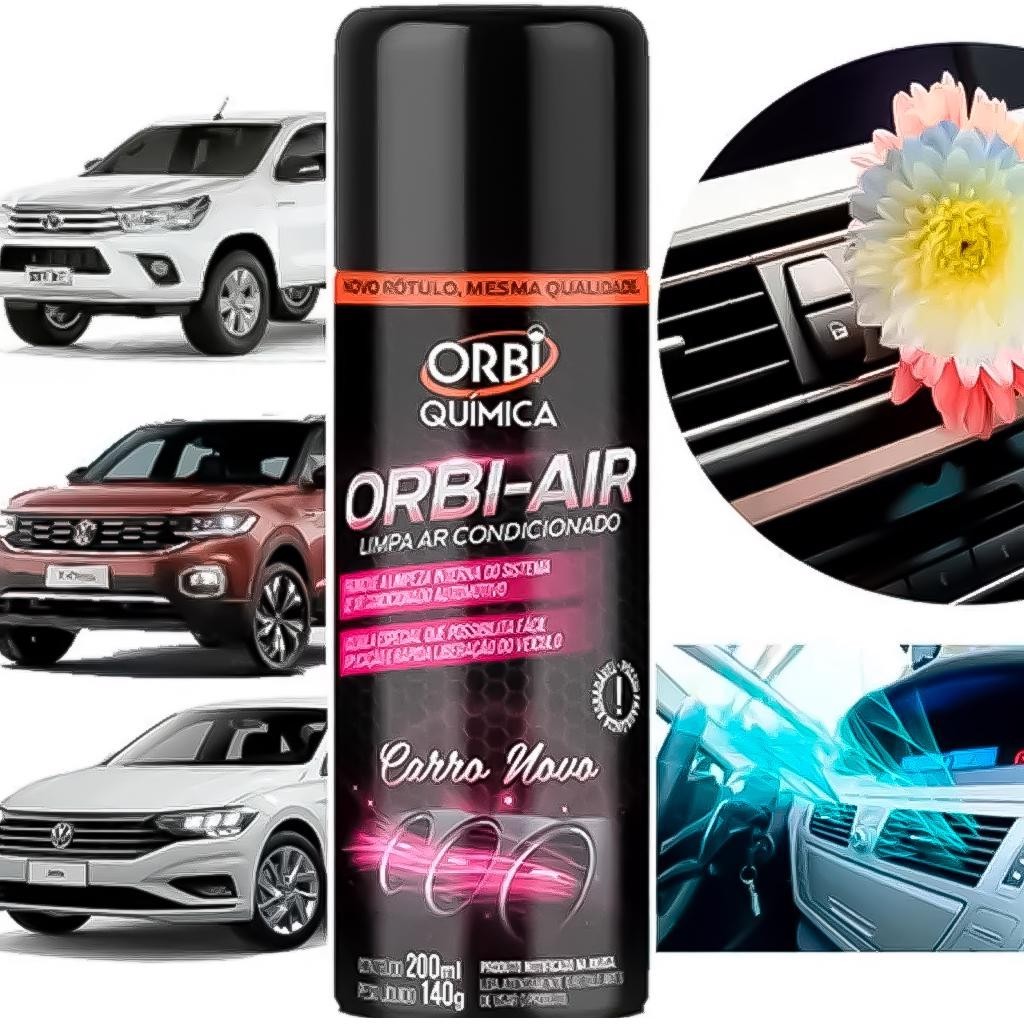 COMERCIAL VIPASA DISTRIBUIDRA. Informações do Produto Higienizador Limpa Ar Condicionado Orbi Air Spray Higienização 200ml AROMAS : CLASSIC, LAVANDA, FLORAL, E CARRO NOVO. Produto: Higienizador Limpa Ar Condicionado Marca: Orbi LIMPA AR CONDICIONADO foi formulado com o mais moderno conceito de limpeza para o sistema de ar condicionado. Possui uma válvula especial, que trava após o acionamento e libera automaticamente o produto para o interior do veículo, efetuando assim a limpeza do ar condicionado e deixando uma agradável fragrância após a aplicação. Modo de usar: 1. Retire os tapetes, se forem de borracha e deixe os vidros dianteiros com uma abertura de aproximadamente 5cm. 2. Com o veículo ligado (em marcha lenta), coloque o sistema de ar condicionado na função de recirculação. 3. Ligue o ar condicionado em potência alta e ar frio. 4. Agite a embalagem e coloque sobre o assoalho do passageiro. 5. Aperte a válvula até o travamento da mesma e aguarde o término da aplicação (aproximadamente 4 minutos). 6. Após o término da aplicação, aguarde 10 minutos para entrar no veículo. 7. Desligue o veículo, abra todos os vidros por 5 minutos, antes de utilizar o veículo. -Antes da aplicação do produto, trocar o filtro Pólen (caso o veículo possua). -Principais aplicações limpeza dos dutos do sistema de ventilação do veículo e partes internas, evitando a contaminação. • Deixa um aroma agradável por mais tempo • Libera o veículo em pouco tempo • Dispensa o uso de equipamentos • Fácil aplicação • Válvula de aplicação tipo granada IMPORTANTE: Todos os nossos produtos são NOVOS, acompanha NOTA FISCAL, estão disponíveis em nosso estoque a PRONTA ENTREGA e possuem GARANTIA (os prazos são discriminados conforme o fabricante contra defeitos de fabricação). COMERCIAL VIPASA DISTRIBUIDRA.