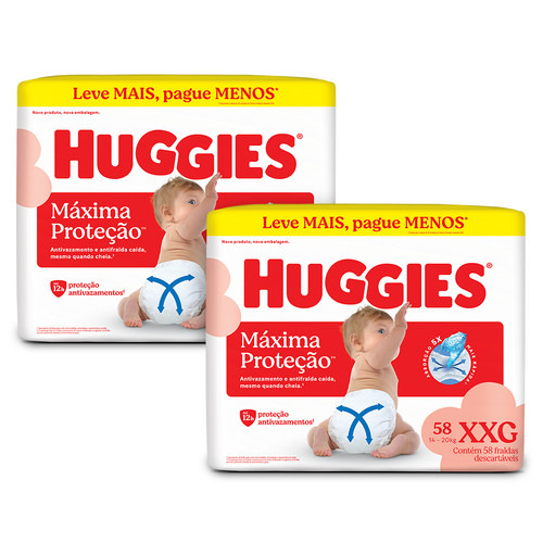 Kit 2 - Huggies Fralda Descartável Máxima Proteção XXG - 58 Un