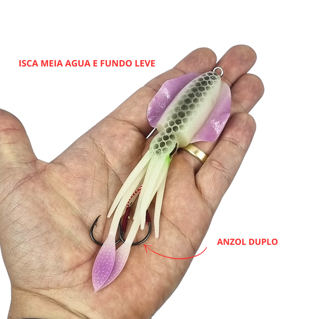 Kit 2 Isca Artificial Lula Soft 56g 15cm Meia Agua Fundo Tucunaré Pesca Pirarucu Robalo Peixe