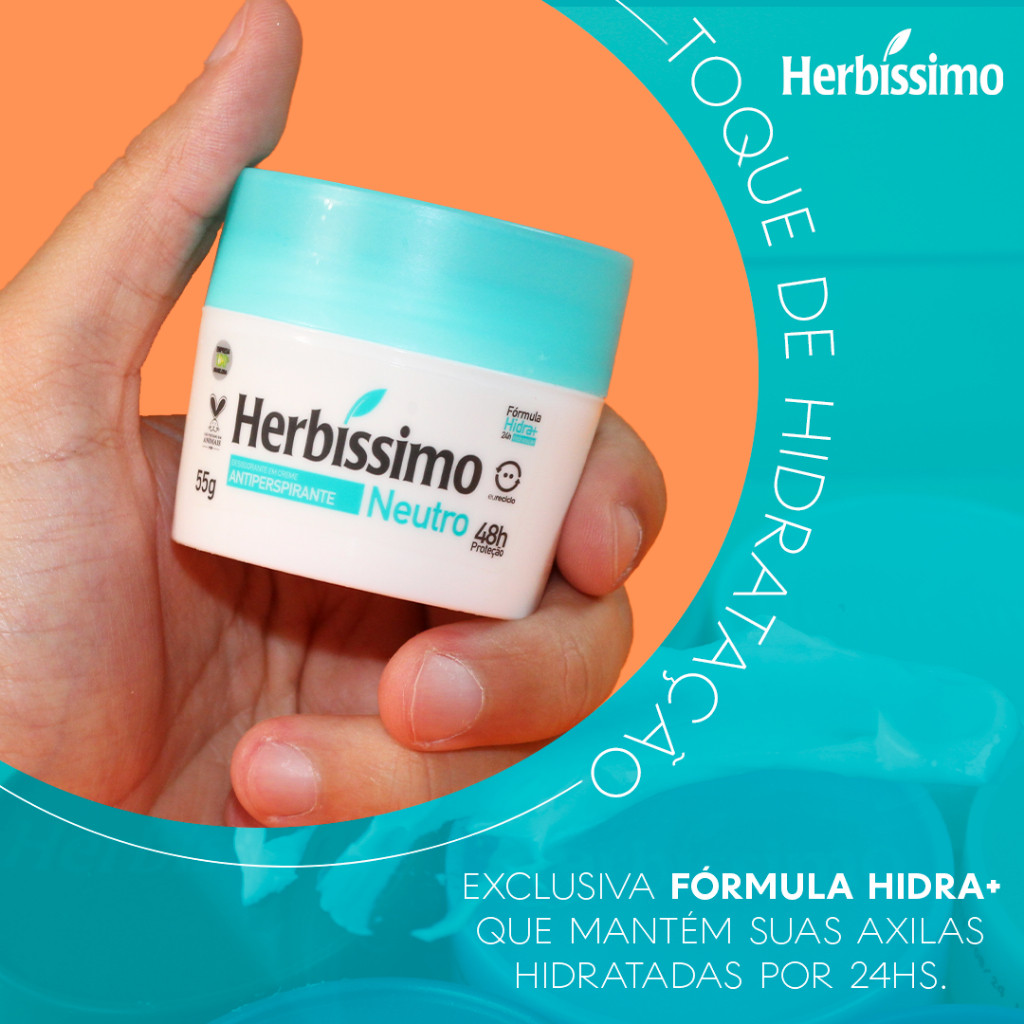 Kit 2 itens - Desodorante Creme Antitranspirante Herbíssimo | Sachê Refil + Potinho | Neutro 45g